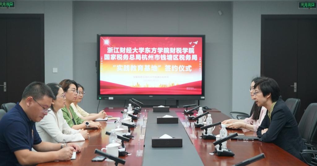 2024年6月5日,伟德国际victor1946与国家税务总局杭州市钱塘区税务局举行实践教育基地签约仪式。钱塘区税务局党委委员、副局长张小莉,组织人事科负责人韩凯凯,伟德国际victor1946院长刘颖、副院长刘央央以及税务系教师代表参加了此次签约仪式。