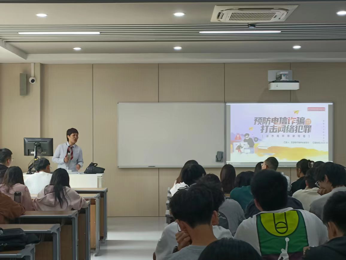 讲座前,交通银行海宁长安支行行长陈鑫源给在场学生介绍了当前电信网络诈骗犯罪的严峻形势,犯罪分子作案手段多样复杂,不断迭代变化。他强调,近年来大学生受骗事件屡见不鲜,希望通过此次讲座,帮助同学们提高反诈防骗意识。