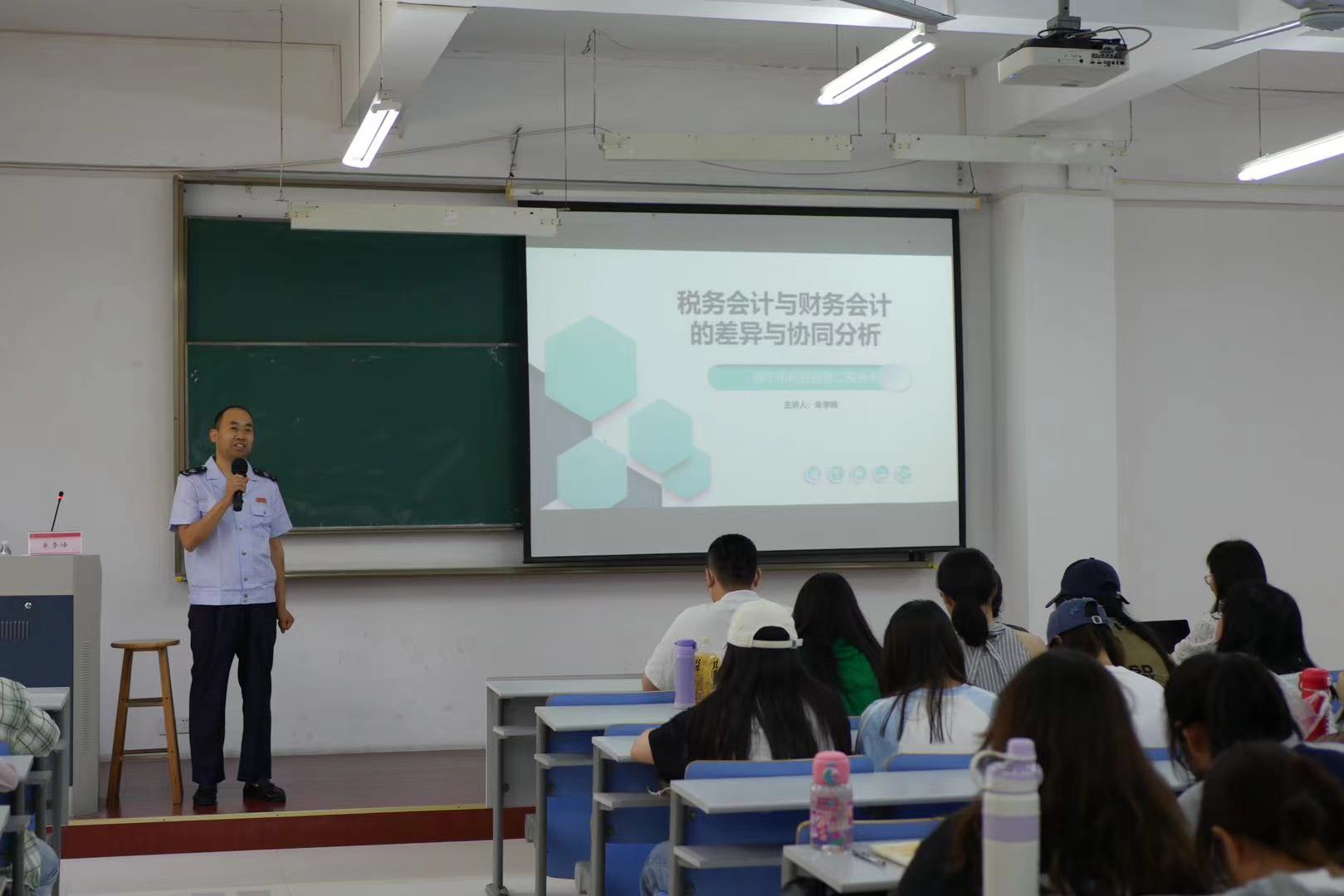 为加深学生对税务会计与财务会计之间关系的理解,掌握税收理论与实务知识,我院于2024年6月4日下午邀请海宁市税务局第二税务所副所长朱李峰,在6J105开展了“税务会计和财务会计的差异及协同分析”主题讲座。本次讲座由高伟华老师主持,蔡丞老师、孙文佳老师、22级税收专业和23税收C1班全体学生参与此次讲座。