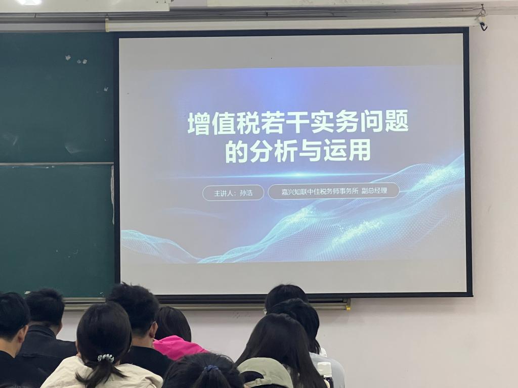 2023年10月31日下午4:00,在6教205教室,开展了主题为“增值税若干实务问题的分析与运用”的专题讲座,本次讲座邀请到嘉兴知联中佳税务师事务所副总经理孙浩作为主讲人。22级税收学专业、23税收C1班同学聆听了实务讲座,税务系郁晓教授、高伟华老师、孙文佳老师等一同参加了讲座,讲座由税务系主任朱计老师主持。