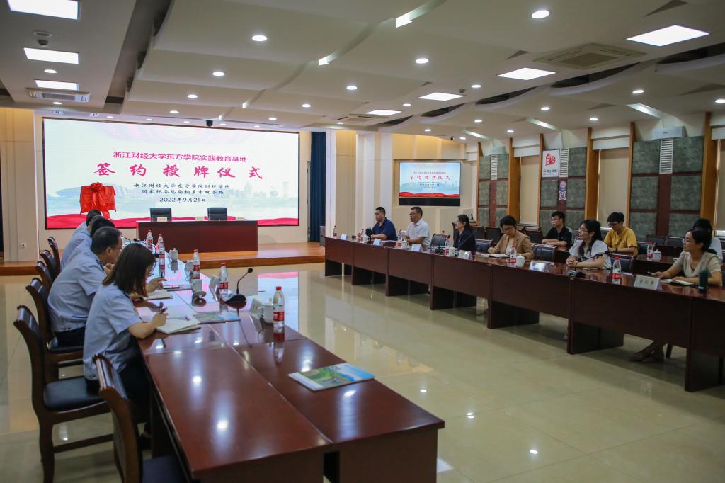 为进一步深化税校共建,2022年9月21日,我院与国家税务总局桐乡市税务局举行浙江财经大学东方学院实践教育基地签约授牌仪式。学院院长刘颖、副院长刘央央,桐乡市税务局副局长王云飞、陶宏,税务教研室全体教师等参加了本次活动。