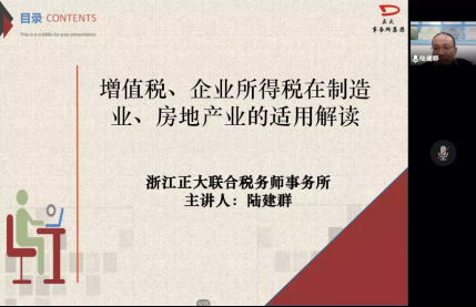 2022年6月6日晚18:30,伟德国际victor1946开展了主题为“增值税、企业所得税在制造业、房地产业的适用解读”的讲座。讲座邀请了浙江正大联合税务师事务所所长陆建群作为主讲人,由《中国税制》课程主讲老师朱计主持。讲座以线上线下结合的方式开展,2020级财政学专业120余位同学参加了此次讲座。