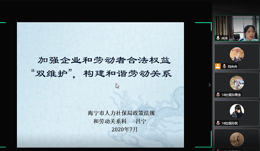 专业实践教育主要通过专家线上讲座进行,主讲人由校外导师和校内专业教师组成,校外导师分别邀请了浙江省财政厅会计人员服务中心主任余丽生研究员、海宁市人力资源和社会保障局政策法规和劳动关系科吕宁科长、国家税务总局海宁市税务局第二税务所孙立新所长三位政府实务部门人员,讲座主要内容包含财政学、税收学、劳动与社会保障三个专业的实务操作与政策解读,以及公共医疗卫生与防疫、财政机构设置等热点问题。