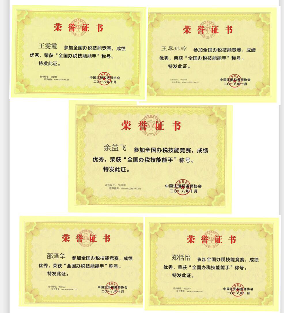 今年是财税分院首次参与该项全国性的学科竞赛。经统计,分院近350名学生参赛,其中275人成绩合格。15级、16级财政和税收两个专业参赛率达到70%,合格率达到85%,其中余益飞、郑恬怡、邵泽华、王李玮琼、王雯霞5位同学成绩90分以上,获得“全国办税技能能手”称号。