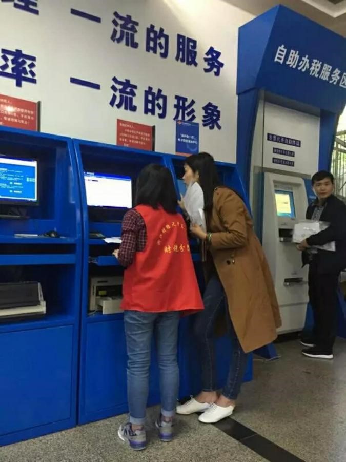 首先志愿者们在指导老师的帮助下,对如何验收发票、如何开发票、如何使用自助机器等问题进行了学习。紧接着志愿者便进入了导税工作中。在活动中,志愿者们遇到很多需要帮助的老人们。老人们依然充满热情的态度,让志愿者们明白了生命不息,纳税不止。