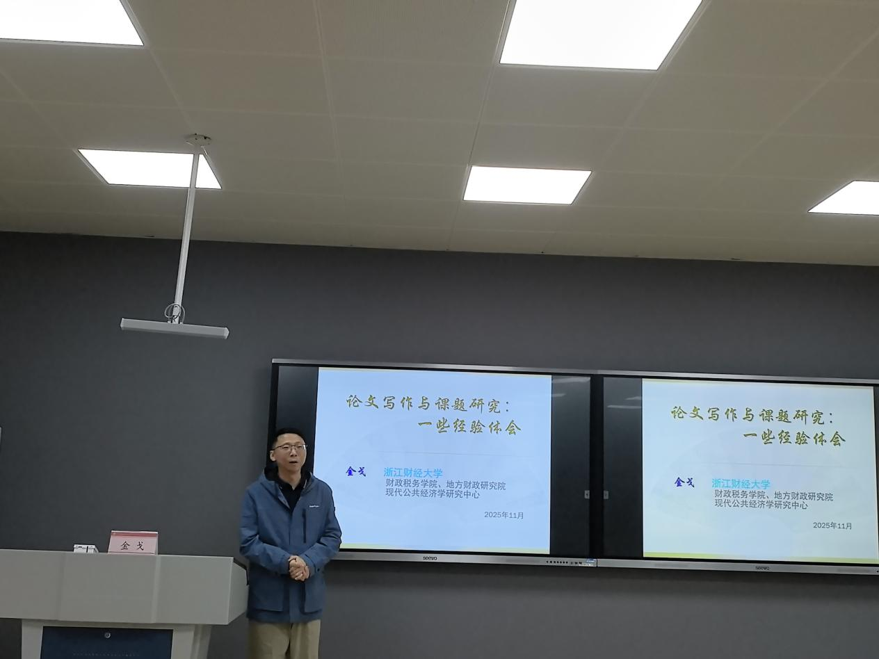 2025年11月11日下午,伟德国际victor1946在J6-403教室举办了以“论文写作与课题研究:一些经验体会”为主题的应用经济学学科建设讲座。本次讲座特邀浙江财经大学现代公共经济学研究中心主任、浙江省高校高水平创新团队“现代公共经济学前沿研究团队”负责人金戈教授为主讲人。