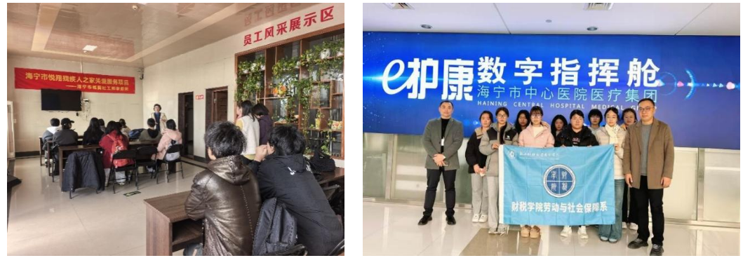 二是走出去。结合学生的兴趣,以小组为单位,师生们深入一线,实地观摩了劳动仲裁庭、杭海政务服务中心、残疾人之家、人力资源公司及智慧医养中心。通过将课堂延伸至广阔的社会现场,学生们得以在真实的场景中,生动地观察和理解自己专业的价值与形态。