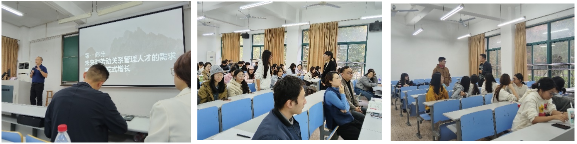 一是请进来。本学期邀请了三位社保一线的嘉宾亲临课堂,带来了极具启发性的分享。来自元点公司的梁思维老师,以其在劳动关系领域的深耕经验,清晰勾勒出职业发展的技能图谱;海宁社会救助联合体杜鹃会长,则从鲜活的一线案例出发,诠释了社会救助工作的价值内核;2014届校友钱卓琦的跨界成长故事,更是展现了专业背景的多元可能。他们的真知灼见,为同学们的专业认知与未来规划注入了生动引领。