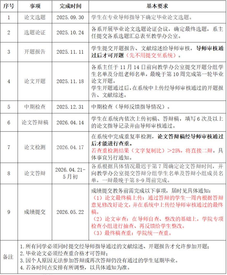 为了更好地开展学院的毕业论文和毕业实习工作,根据《关于2026届学生毕业论文(设计)工作安排的通知》(浙财大东教〔2025〕79号),结合伟德国际victor1946的实际情况,对伟德国际victor19462026届本科生毕业论文的时间进程作如下安排: