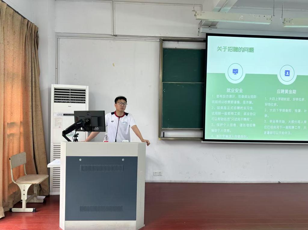 最后,罗乐平进行总结讲话,提出以下建议:第一,保持积极主动的态度,求职时主动出击、勇于尝试;第二,合理调整就业期望,要综合考虑内外部因素,寻找一个平衡点;第三,结合国家政策,鼓励同学们勇于创新和创业,创出属于自己的一片天地。他再次强调了角色转变的概念,希望同学们不仅要具备扎实的专业知识,还要拥有较强的实践能力、创新精神以及良好的综合素质,不断提高自己的竞争力。此外,他还着重表达了学院一直以来对同学们就业工作的高度重视,会为大家提供全方位的支持与帮助。
